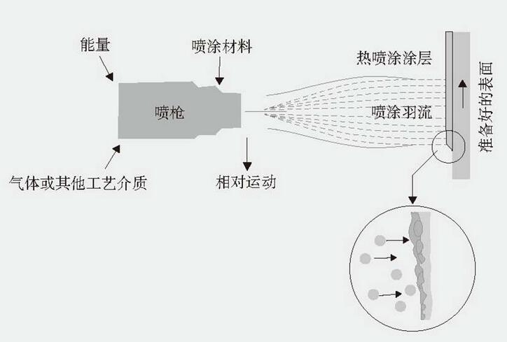 圖(2)噴涂陶瓷涂層時的工作原理